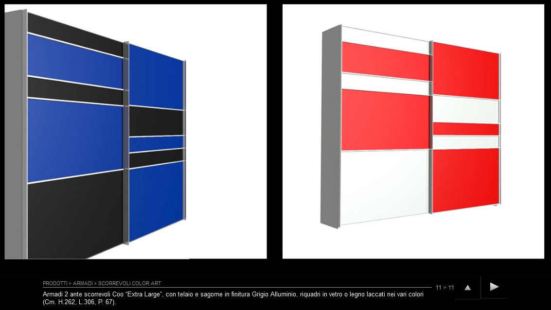 Tutte le composizioni di armadiature battenti e scorrevoli fotografate possono essere ambientate su misura. Richiedi il tuo preventivo!