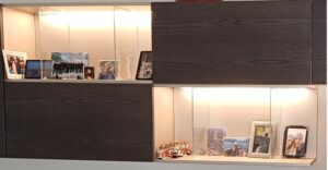 Sistema giorno Skyline 3.0, una soluzione in essenza olmo autunno e particolari a contrasto laccato champagne che danno luminosità esaltando l’armonia dell’ accostamento e restituendo calore, ricercatezza e pulizia delle forme.
